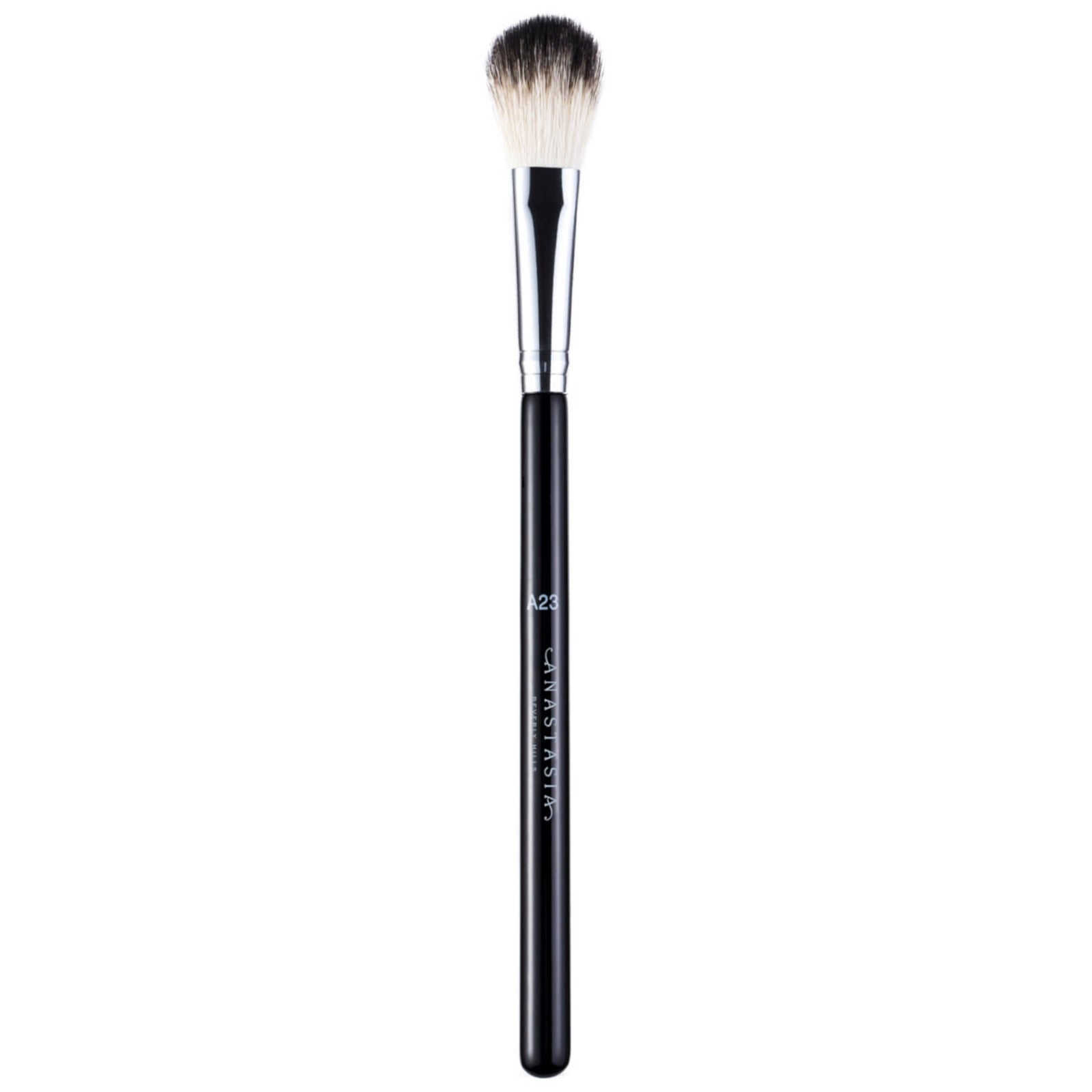 Get that glow with the Anastasia Beverly Hills A23 Brush. This large tapered blending brush is ideal for applying highlighter and illuminators to the skin. The professional-quality brush boasts a flattened fan shape to pick up and softly diffuse powders onto the skin. Banish the dreaded stripe of highlighter and create a seamless glow with this ultra-soft flared brush. Buff and blend highlighter ot create a radiant complexion with this expertly crafted makeup brush.