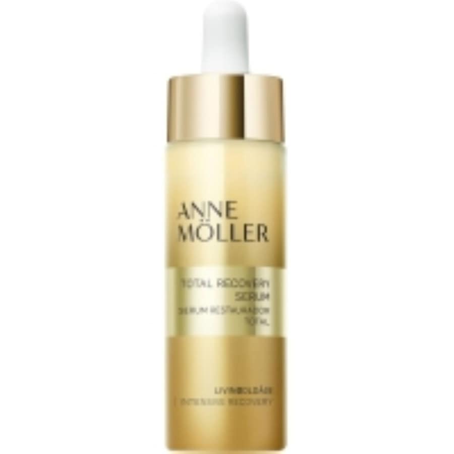 Anne Möller LIVINGOLDÂGE Total Recovery SerumHet LIVINGOLDÂGE Total Recovery Serum is gebaseerd op een krachtige mix van natuurlijke ingrediënten die de huideigen productie van essentiële eiwitten ondersteunt om de stevigheid en dichtheid te verbeteren. Daarnaast gaat Narcissusextract de overproductie van melanine tegen en doet het zijn uiterste best om pigmentatie te verminderen. Arganolie, macadamiaolie en sheaboter verfijnen het serum en zorgen voor maximaal comfort en een soepel huidgevoel..