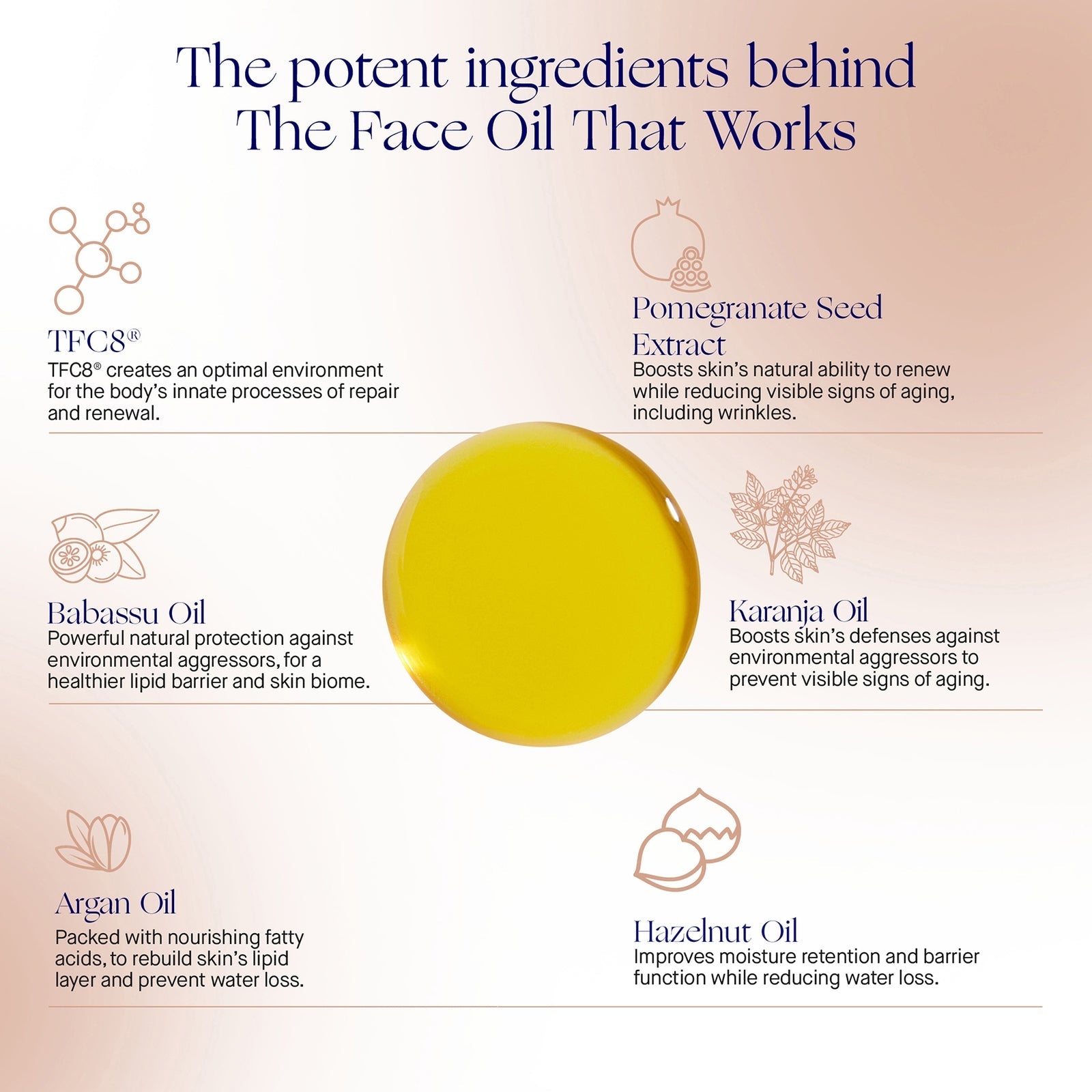 The Augustinus Bader Face Oil is designed to reduce the appearance of fine lines and uneven pigmentation with a potent blend of botanical active oils. Developed with the brand’s groundbreaking patented technology, TFC8®, the formula features a proprietary blend of natural amino acids, high-grade vitamins and peptides that help to nourish the skin’s barrier. Argan and hazelnut oil combine to lock moisture into the skin. Infused with Karanja and babassu, the facial oil is enriched with potent antioxidants, working to defend the skin against environmental aggressors that can contribute to premature skin ageing. Complete with the brightening benefits of pomegranate seed, the oil encourages a smooth, luminous look.