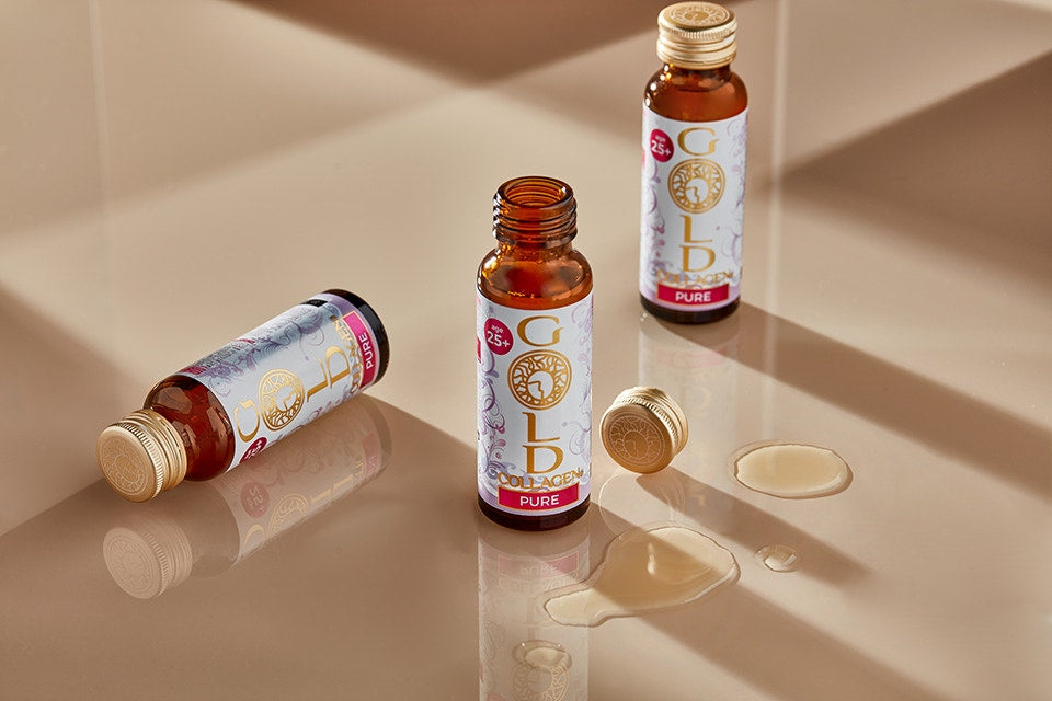 PURE is the original GOLD COLLAGEN® supplement, formulated by our scientists and nutritionists to offer a unique combination of 11 active ingredients including hydrolysed collagen, hyaluronic acid, borage oil, vitamins and minerals. Carefully selected for their skincare benefits, they are blended into a peach flavoured liquid supplement for optimum absorption and bioavailability. Supported by our advanced European patented complex NUTRIGLOW® and 2 published clinical trials 3, all from the Collagen Expert, trusted since 2011.