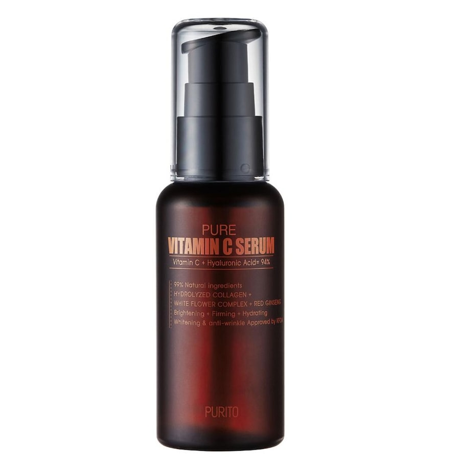The PURITO Pure Vitamin C Serum, formulated with 5% ascorbic acid and 85% hyaluronic acid, helps to improve skin tone and texture while focusing on replenishing the complexion with intense hydration.Promoting a radiant, lit-from-within glow, the serum seeks to nourish dull skin with a blend of brightening niacinamide and red ginseng extract, encouraging a firm, illuminated appearance. Encased within a dark brown bottle, the serum is protected from sunlight to avoid oxidisation.