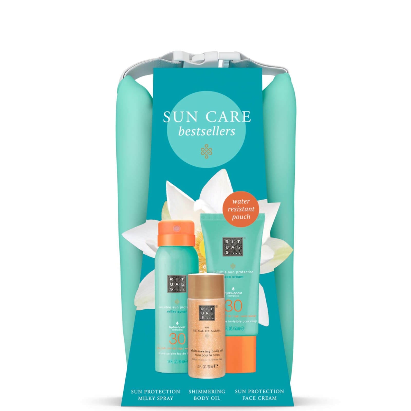 Add a touch of luxury to your summer skin essentials with The Ritual of Karma Delicately Sweet Lotus & White Tea Karma Sun Trial. Featuring three of the brand's bestselling sun care products, the collection helps to protect, nourish and hydrate your skin during the sunny season, housed inside a handy water-resistant carry case. Set Contents: The Ritual of Karma Sun Face Cream SPF30 50ml The lightweight cream provides consistent, high broad spectrum protection for your face. The ultra-hydrating cream instantly absorbs into the skin, settling to a slightly mattified finish. Infused with vitamin E, white tea and lotus flower, the water-resistant formula leaves skin feeling, smooth, protected and nourished. The Ritual of Karma Sun Protection Milky Spray SPF30 50ml The hydrating mist instantly sinks into the skin to help protect skin from UVA and UVB rays. Powered by an advanced protection system and anti-oxidant complex, the water-resistant mist is infused with white tea, natural vitamin E and ginkgo biloba. The Ritual of Karma Shimmering Body Oil 30ml Thanks to a blend of jojoba, olive and safflower oil, the luxurious formula quickly absorbs to help condition and brighten dull-looking skin. A subtle shimmer of pearlescent mineral particles envelops the skin with luminosity. The shimmer oil is delicately scented with notes of white tea and lotus flower.