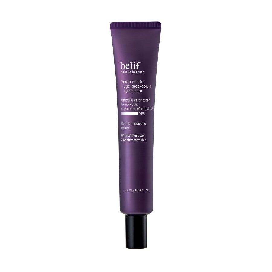 Belif - Youth Creator Age Knockdown Eye SerumDit antiverouderende oogserum uit de antiverouderingslijn van belif is speciaal ontwikkeld om de tere huid rond de ogen te verstevigen en te liften.Dankzij de lichte textuur en de formule verrijkt met lupinezaadextract zorgt dit product voor een diepe hydratatie (+166%) en vermindert het de zichtbaarheid van rimpels voor een gezonde, verjongde look.Dermatologisch getest. Ideaal voor consumenten die de eerste tekenen van huidveroudering vertonen en geschikt voor alle huidtypes.