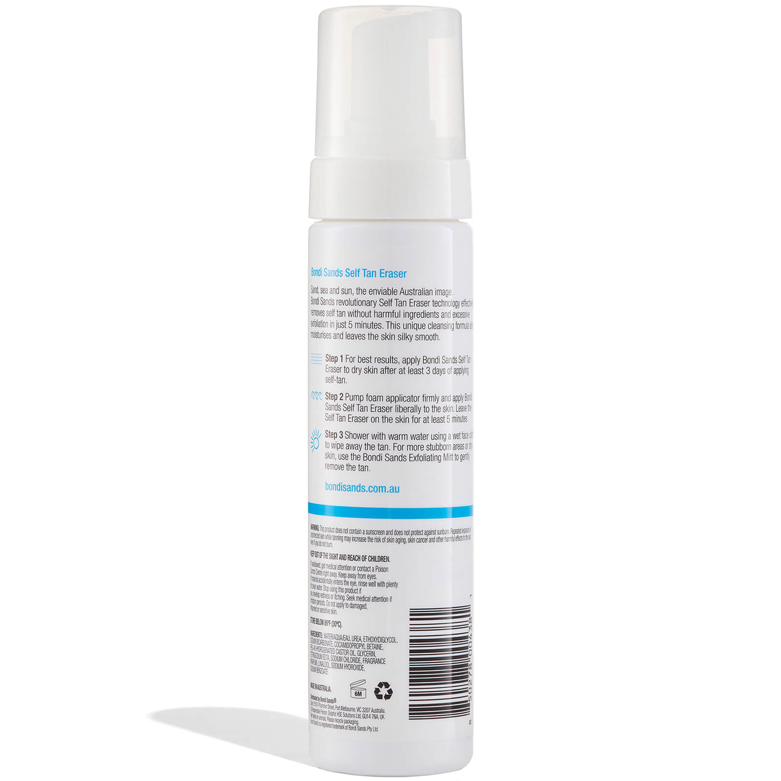 Zon, zee en strand: een benijdenswaardig Australisch plaatje. De revolutionaire technologie van Bondi Sands Self Tan Eraser verwijdert in slechts 5 minuten effectief zelfbruiningsproducten, zonder schadelijke ingrediënten en overmatig exfoliëren. Deze unieke formule reinigt, hydrateert en laat de huid zijdezacht aanvoelen.Bondi Sands Self Tan Eraser Travel Size, in handige mini-uitvoering, verwijdert effectief zonder overmatig exfoliëren in slechts 5 minuten  zelfbruiningsproducten. De gepatenteerde technologie bevat geen schadelijke ingrediënten, reinigt, hydrateert en laat door kalmerende aloë vera de huid zacht en glad aanvoelen. Verwijdert direct zelfbruinersMild schuimende cleanserVerkrijgbaar in 100 ml en 200 ml
