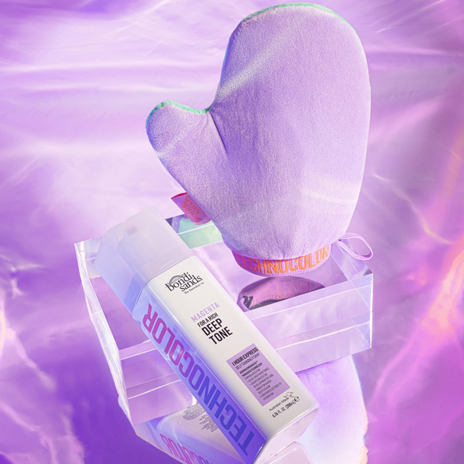 Bondi Sands Self Tanning Foam Technocolor 1 Hour Express is een wetenschappelijk ontwikkeld zelfbruiningsproduct. Op basis van klinische onderzoeken (waarbij is gekeken naar het mengen van activerende bruiningsingrediënten, hydratatie en kleur) is een optimaal resultaat gerealiseerd om de perfecte teint en kleurduurzaamheid te bereiken.Kleur: SapphireBondi Sands Technocolour Sapphire is geformuleerd voor een lichte huid. Bevat een blauwgrijze grondkleur en een laag gehalte activerende bruiningsingrediënten om de ontwikkeling van een oranje teint tegen te gaan. Voor een natuurlijke, koele teint. Kleur: EmeraldBondi Sands Technocolour Emerald is geformuleerd voor een medium getinte huid. Bevat een groene grondkleur en een gemiddeld gehalte activerende bruiningsingrediënten om de ontwikkeling van een oranje teint tegen te gaan. Voor een diepe, olijfkleurige teint. Kleur: Magenta Bondi Sands Technocolour Magenta is geformuleerd voor een diepe olijfkleurige huid. Bevat een rood-violette grondkleur en een hoog gehalte activerende bruiningsingrediënten om de ontwikkeling van een koele teint tegen te gaan. Voor een rijke, diepbruine teint. Kleur: CaramelBondi Sands Technocolour Caramel is geformuleerd voor een donkere huid. Bevat een geel-gouden grondkleur en een laag gehalte activerende bruiningsingrediënten om uitdroging tegen te gaan. Voor een warme, gouden teint.