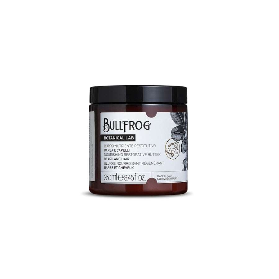 Nourishing Restorative Butter is een conditioner voor haar en baard geïnspireerd op de meest klassieke recepten, met een zachte en omhullende textuur die het onmiskenbare aroma van pistachenoten bevat. Deze pistachebalsem ontwart haar en baard, verbetert hun conditie, maakt ze nog zachter en meer omhullend en biedt bescherming tegen vervuiling. Herstel je haar en baard met Bullfrog Voedende olie.Het aroma van het product onderscheidt zich door exquise noten, een combinatie van pistache en amandel, een uniek handelsmerk van de . Bullfrog.