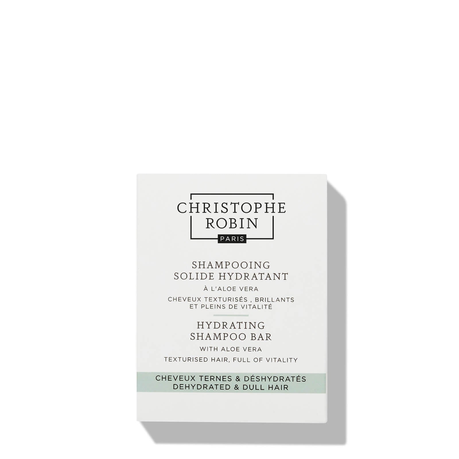 Simplify your morning routine with the Christophe Robin Hydrating Shampoo Bar with Aloe Vera. The 100% natural solid shampoo bar gently cleanses the hair and body without stripping the protective moisture barrier. Quick, easy and ecologically conscious, the multi-benefit 2-in-1 cleansing formula harnesses the power of gentle yet effective natural cleansers. Enriched with soothing Aloe Vera, natural Glycerin and Castor Oil, the shampoo bar effectively lifts away dirt and impurities to leave the hair feeling silky and hydrated.Vegan. 100% natural.Free from parabens, silicones and SLS.