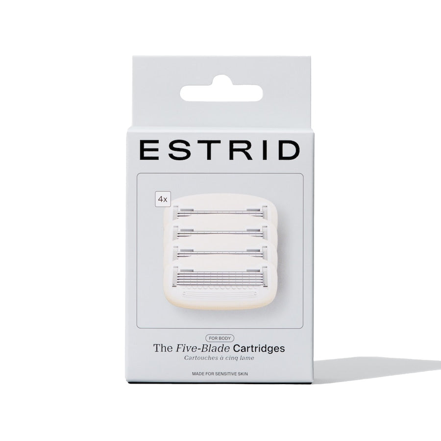 ESTRID - ScheermesjesJij en je lichaam verdienen alleen het beste. Daarom zijn de ESTRID vijfbladige scheermesjes voorzien van een 100% vegan vochtinbrengende strip. In plaats van dierlijke bijproducten zoals lanoline en glycerine te gebruiken, hebben we gekozen voor plantaardige ingrediënten zoals sheaboter, cacaoboter en jojobaolie!