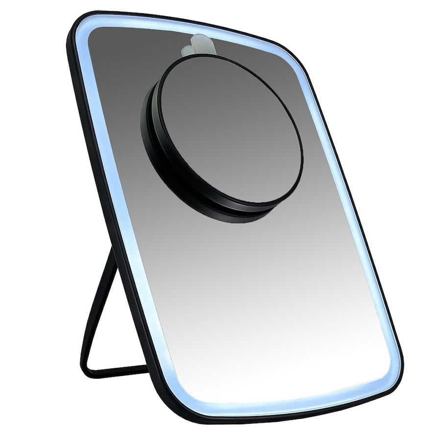 Gérard Brinard - LED Spiegel Touch 9 cm - 10x vergrotendWil je gratis een oud elektrisch of elektronisch apparaat recyclen? Lees dan hier hoe dat werkt! Mooi strakke make up spiegel met LED licht. De spiegel is voorzien van een accu en is daardoor oplaadbaar. De spiegel is makkelijk in te klappen en daardoor ideaal te verplaatsen door het huis of om bijvoorbeeld mee te nemen op reis. Het licht is dimbaar via de touch knop die zich bevind op de voorzijde van de spiegel. Aan de achterkant van de spiegel bevind zicht een kleiner spiegeltje met een doorsnee van 9cm die 10x vergroot. Deze zit in de achterkant bevestigd doormiddel van een magneet. Dit spiegeltje kan er gemakkelijk uitgehaald worden doormiddel van een stevig kunststof lipje. Je kunt het spiegeltje nu met de magneet op de grote spiegel klikken zodat je met licht gebruik kunt maken van de 10x vergroting. Na gebruik kan je het spiegeltje weer achterop klikken waardoor deze altijd veilig en netjes opgeborgen is. De spiegel voelt stevig, robuust aan en staat stevig op zijn pootje. De spiegel word geleverd met USB laadkabel. Diepte: 3 cmBreedte: 17 cmHoogte: 24 cm Voordelen make up LED spiegel: OplaadbaarDimbaarLED lichtInclusief USB laadkabelStrak designIdeaal voor op reisNormale en 10x vergroting