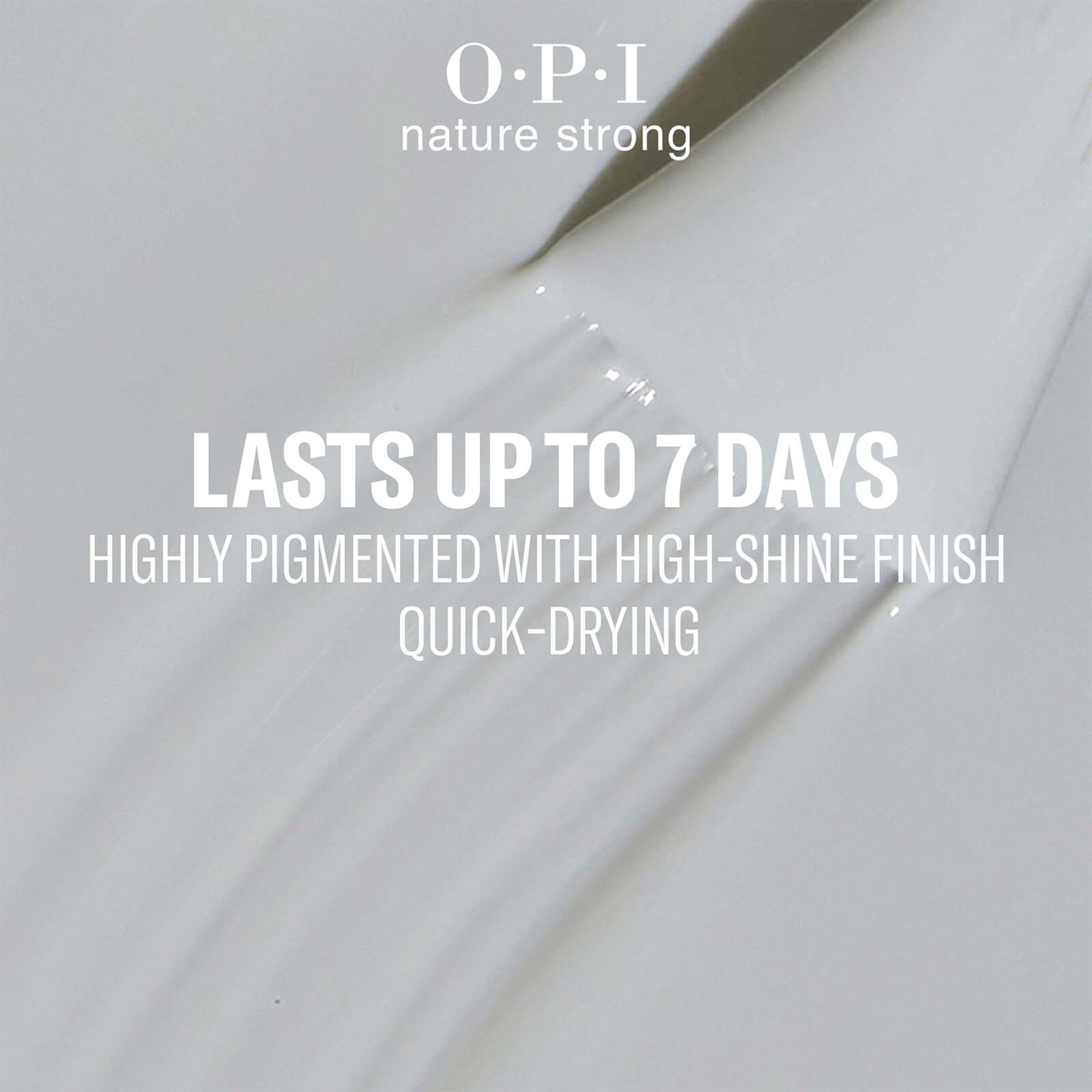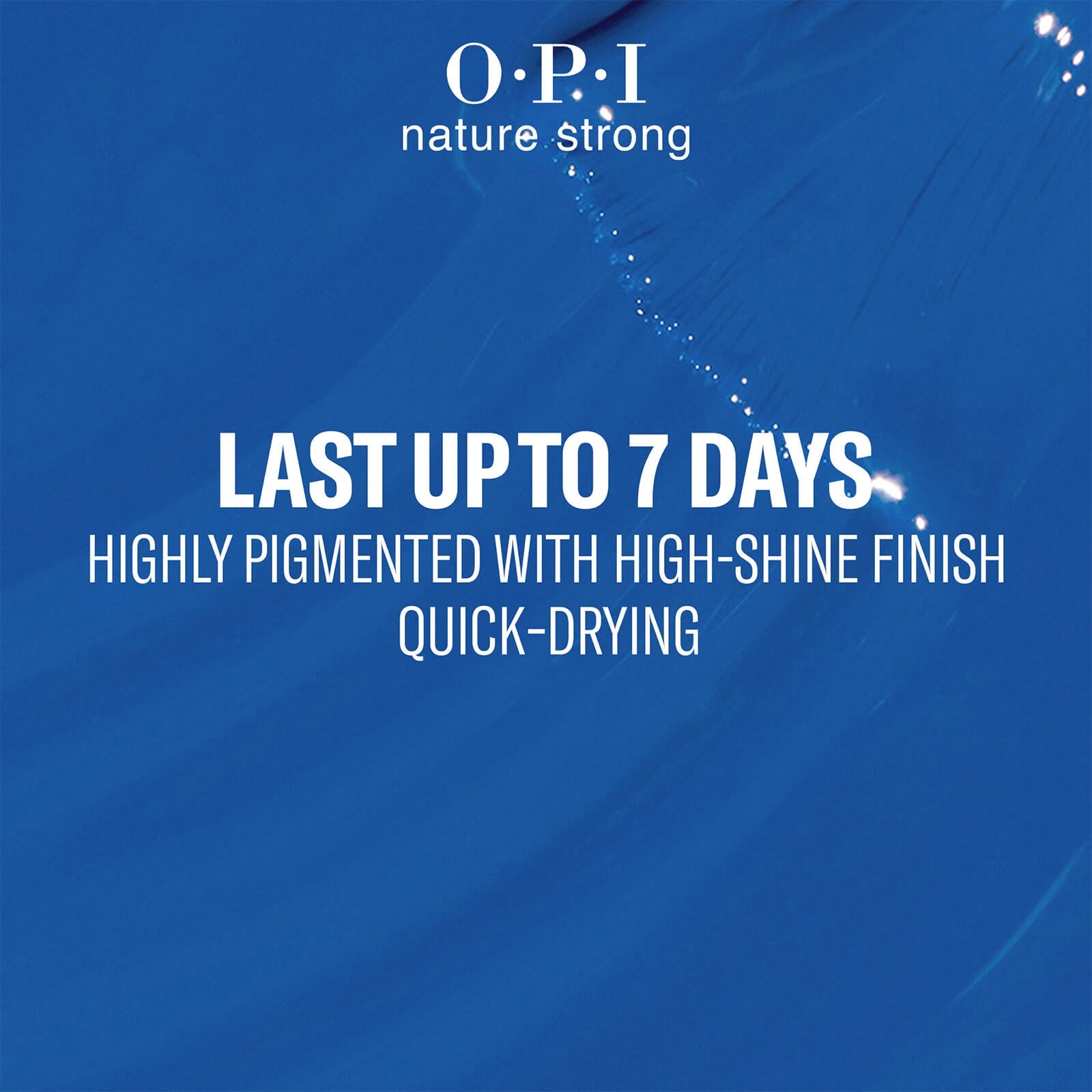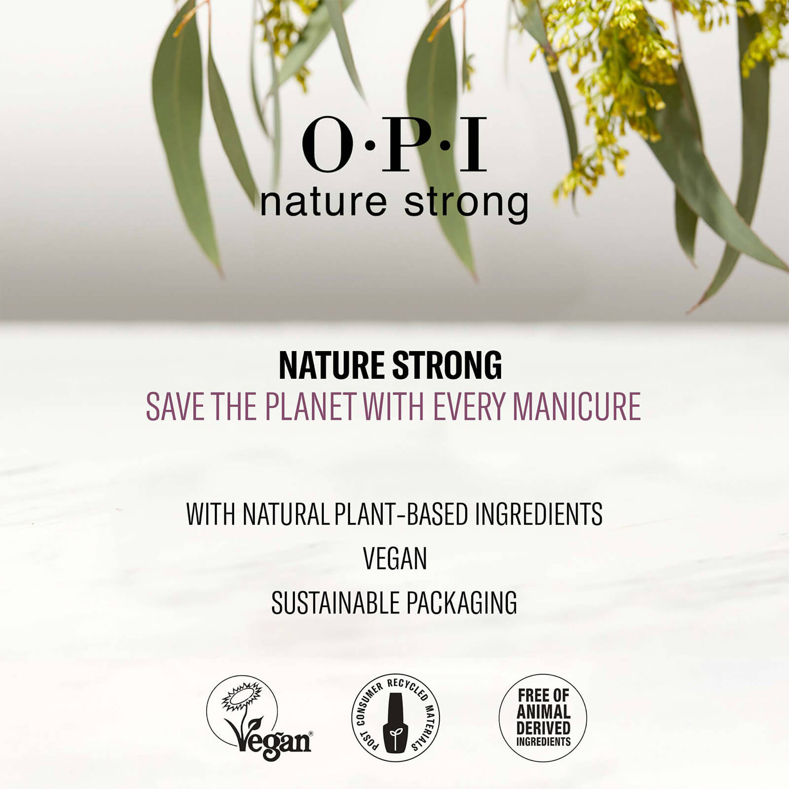 OPI Nature Strong NagellakOPI’s allereerste nagellaklijn binnen het assortiment van hoge kwaliteit natuurlijke ingrediënten. Elke unieke kleur is makkelijk aan te brengen en sneldrogend en staat garant voor 7 dagen mooi resultaat met een prachtige glans die blijft. De collectie bevat neutrale aardetinten, vrolijke, felle kleuren en diepe, tijdloze kleurtonen in zowel crème, glitter als parelmoer.Alle kleuren doen eer aan de natuur om ons heen, met een formule gebaseerd op natuurlijke ingrediënten. De base- en top coat zijn optioneel, voor een nog intensere hoogglans en bescherming. Elke kleur ademt milieubewustzijn en welbevinden uit, door de formule op basis van plantaardige ingrediënten als suikerriet, tarwe, maïs en een flesje en dop op basis van gerecyclede materialen. De premium formule is vrij van dierlijke ingrediënten en bijproducten en is dierproefvrij, zodat je je nagels, jezelf en de wereld om je heen bewust en op de allerbeste manier kunt verzorgen.