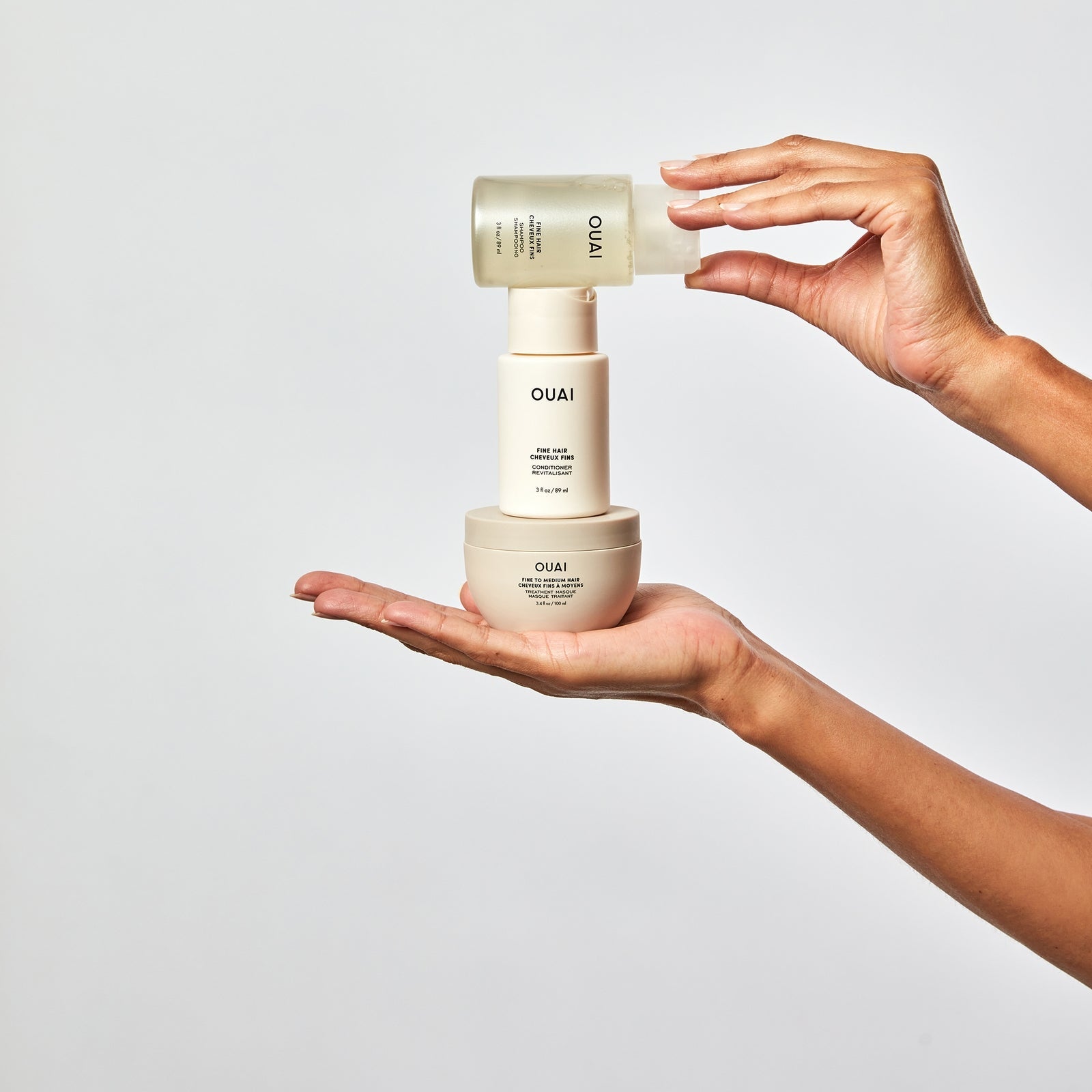 OUAI - Fine ConditionerDe Fine Conditioner van OUAI geeft fijn, dof haar een magische gladheid, volle veerkracht en prachtig volume - zonder het te verzwaren! Met essentiële voedingsstoffen helpt biotine gezond uitziend en sterk haar te bevorderen, terwijl een diepwerkend hennep-extract waardevolle vochtigheid biedt om het haar te beschermen tegen uitdroging. Gehydrolyseerde keratine in de formule vult de gaten in de natuurlijke keratine van de haarzakjes en psylliumolie zorgt voor dichter haar vol body en volume - zeg maar dag tegen fijn haar.