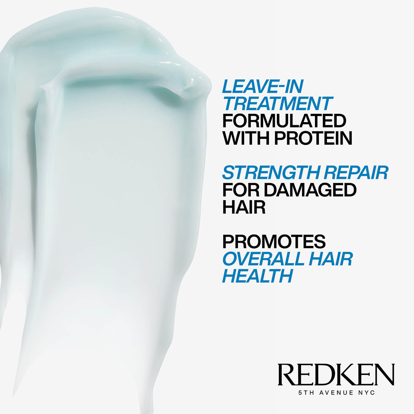 Repair and strengthen your dry, damaged hair with Redken Extreme Strength Builder. It’s an intense, silky rich fortifying treatment for your distressed hair. Redken's exclusive Interbond Conditioning System delivers a unique 3D Repair Complex of proteins, ceramide, and lipids to provide internal strength, cuticle reinforcement and protective resurfacing. The condition of your hair will be beautifully enhanced with increased manageability and extra shine thanks to Redken Extreme Strength Builder. Directions of use: After shampooing apply to towel-dried hair. Leave on for 5 minutes (for deeper conditioning leave on for as long as desired). Rinse thoroughly. Shop more Redken here