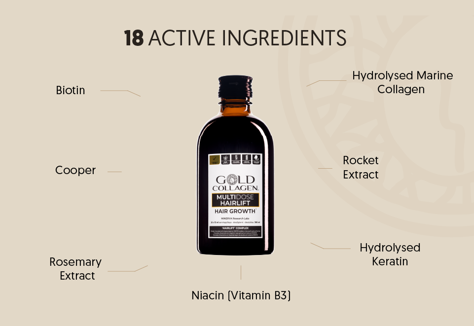 MUTLIDOSE HAIRLIFT has been formulated by our scientists and nutritionists to offer an bigger bottle at a lower price of HAIRLIFT and contains Rocket extract, and other ingredients carefully selected for their hair benefits and blended into a pineapple, peach and mango flavoured liquid supplement, for optimum absorption and bioavailability.
