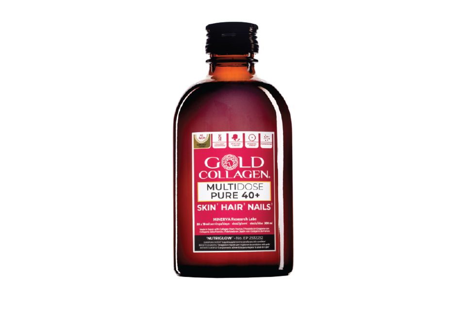 GOLD COLLAGEN® MULTIDOSE 40+ is fortified to not only support skin, hair and nail health for women over 40 but to provide more antioxidant properties and bone and immunity support. Contains 15 active ingredients including our advanced European patented NUTRIGLOW® Complex with Vitamin D, Grape Leaf Extract, Lycopene and Co-Enzyme Q10, vitamins and minerals.