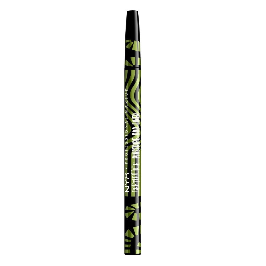 NYX Professional Make Up Beetlejuice Pinstripe Duo Liners zijn de nieuwe dubbelzijdige zwarte en chroom eyeliners van NYX die je de mogelijkheid bieden om een breed assortiment aan kleurrijke looks te creëren. De Beetlejuice Pinstripe Duo Liners van NYX Professional Make Up zijn geïnspireerd op de unieke esthetiek van de film BEETLEJUICE BEETLEJUICE en zijn verkrijgbaar in drie limited edition tinten. Met een elegante, soepele penseelpunt aan de ene kant en klassieke zwarte vloeibare eyeliner aan de andere kant, zijn ze perfect voor het creëren van nauwkeurige lijnen. De intense pigmentatie zorgt voor een langhoudende dramatische look die de aandacht trekt.Stap in de surrealistische wereld van Beetlejuice Beetlejuice met de nieuwe Beetlejuice Pinstripe Duo Liners van NYX Professional Make Up! Met drie tinten zorgt dit duo voor een ongeëvenaarde transformatie. Het penseel maakt het mogelijk om moeiteloos dunne lijnen te tekenen voor een subtiele definitie, terwijl je met een lichte druk op de pen een dikkere lijn kunt maken. Of je nu een minimalistische of gedurfde look wilt, deze eyelinerpen en zorgt voor een nauwkeurige en gedefinieerde finish die de hele dag meegaat. Het kan eenvoudig aangebracht worden door zowel beginners als professionals, en is geschikt voor elke huidtint.