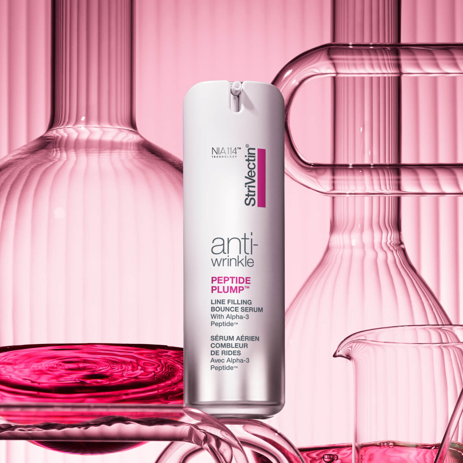 Developed to soften and smooth the look of fine lines, the Peptide Plump Line Filling Bounce Serum by StriVectin is an advanced lightweight formula for all skin types.The innovative serum stars the brand’s proprietary Alpha-3 Peptide™, a technology designed to support the skin and promote a visibly plumper and more radiant result. Red algae offers intense hydration, encouraging the appearance of bounce and elasticity, while turmeric root extract visibly brightens for a long-lasting glow.