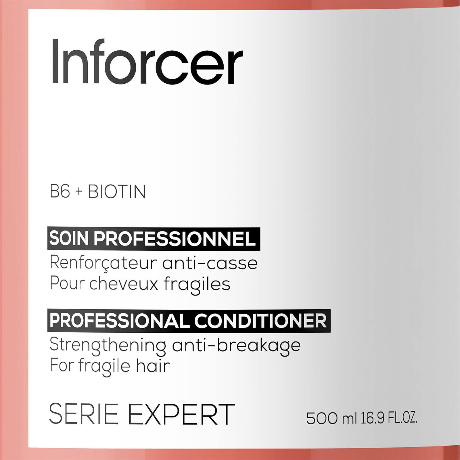 Versterkt het haarDe Inforcer conditioner is ontwikkeld door L'OrÉal Professionnel om het haar intensief te versterken. De herstellende formule is verrijkt met vitamine B6 en biotine om haarbreuk tegen te gaan die kan optreden bij het gebruik van stylingtools zoals borstels, stijltangen of haardrogers. De Inforcer conditioner maakt het haar makkelijker doorkambaar en helpt bij continu gebruik het haar te versterken en de weerstand te verbeteren.