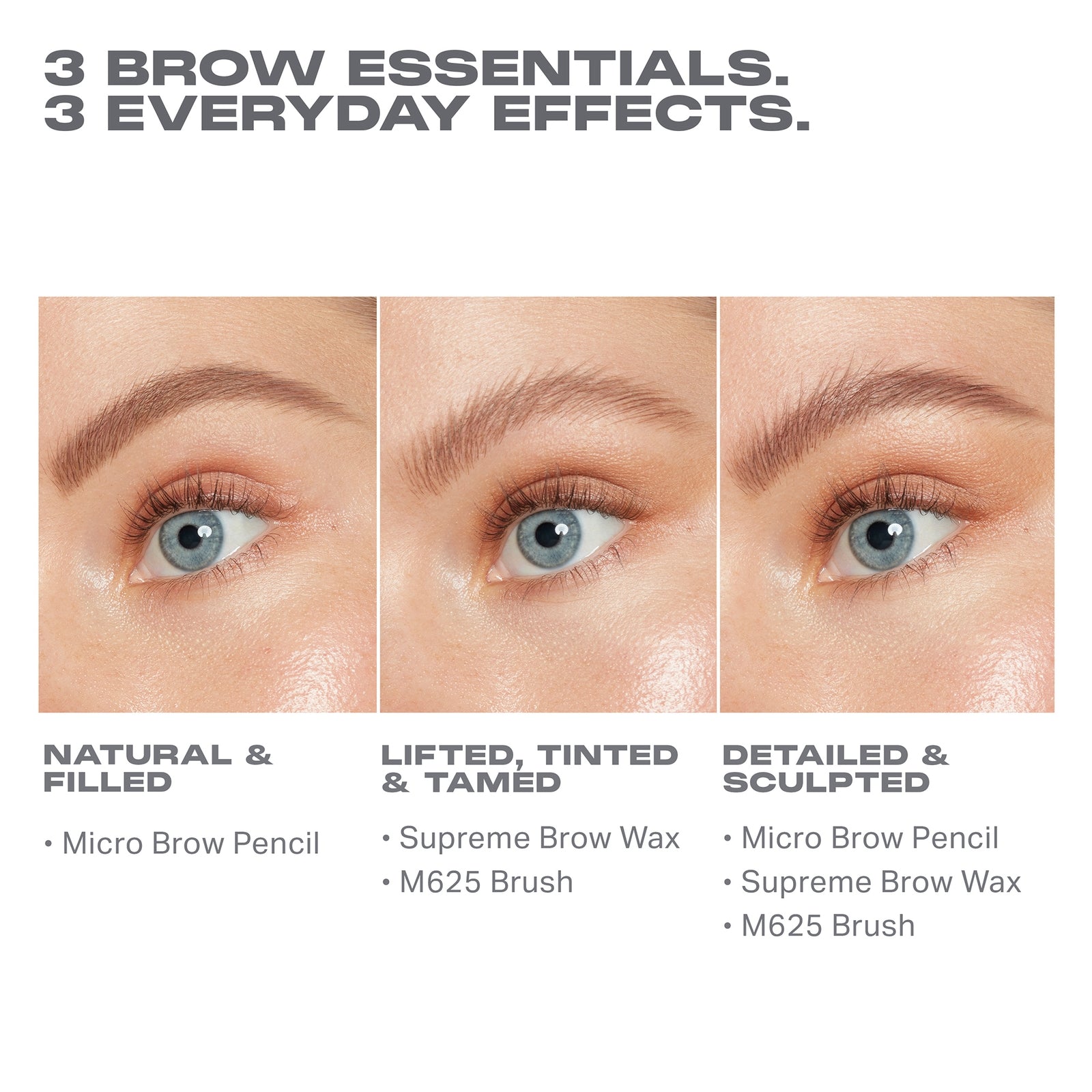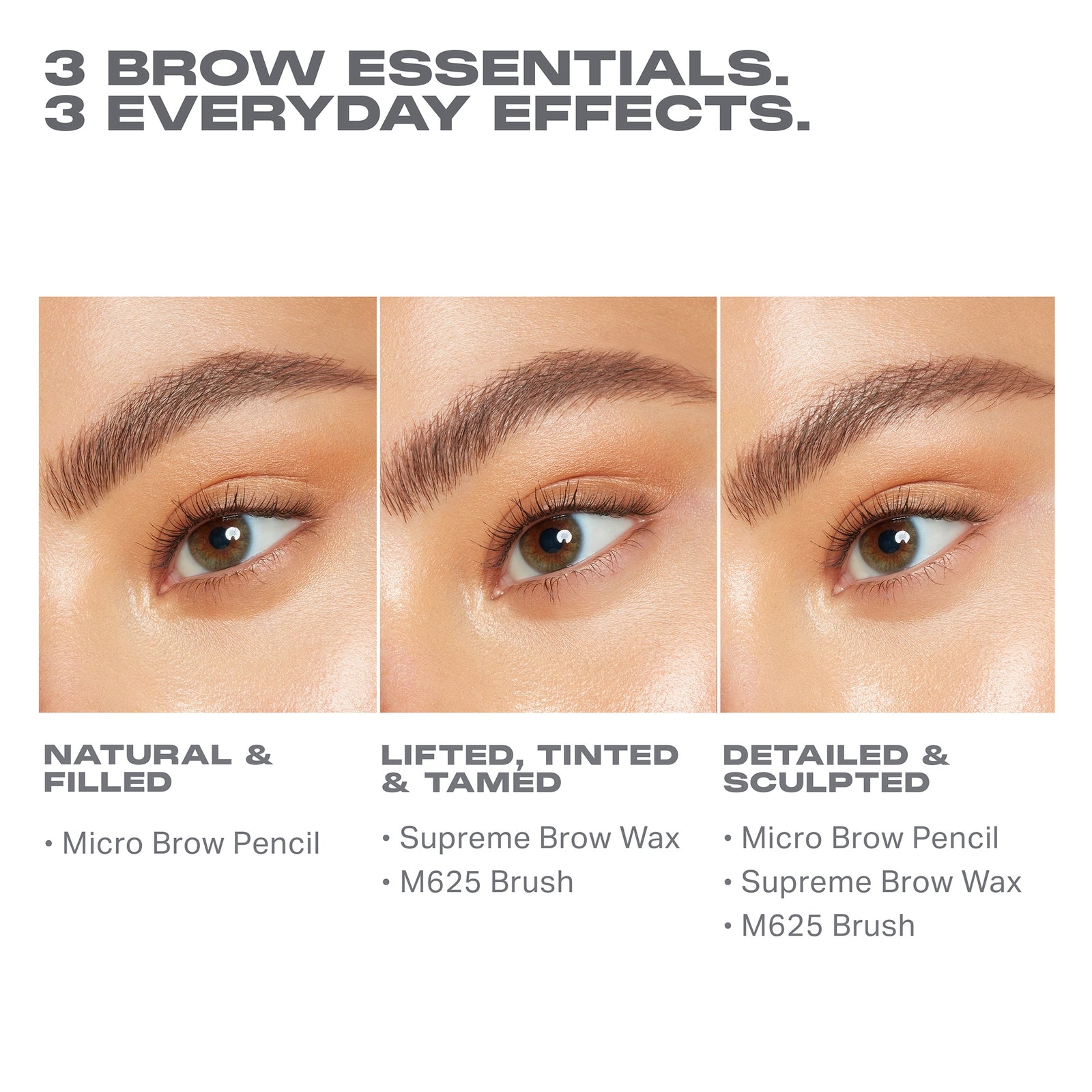Ga voor de perfecte dagelijkse brow mood met de Morphe High Archiever Everyday Essentials Brow Kit met een micro-wenkbrauwpotlood, getinte Supreme Brow Sculpting & Shaping Wax en een drie-in-één contourkwast M625. Gebruik het langhoudende, smooth-gliding precisiepotlood om haartjes in te vullen voor natuurlijke, volle wenkbrauwen, breng de langhoudende waterbestendige wax aan met de contourkwast voor gelifte, getinte en getemde wenkbrauwen of combineer ze alle drie voor gedetailleerde en gemodelleerde wenkbrauwen. Verkrijgbaar in vijf tinten die passen bij een scala aan haarkleuren.
