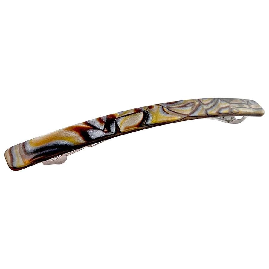 Als traditioneel merk gebruikt Oakland alleen de beste natuurlijke hars voor dit assortiment, ook wel bekend als Rhodoit. Rhodoit wordt gemaakt van katoen en harsen en vervolgens verwerkt in Frankrijk. De complexe en deels handgemaakte Rhodoit haaraccessoires zijn uiterst comfortabel om te dragen. en hebben geen scherpe randen en wordt beschouwd als bijzonder zacht voor de hoofdhuid en het haar. Elke clip heeft zijn eigen patroon, daarom zijn Oakland haaraccessoires gemaakt van rhodoite echt uniek. Een hoogtepunt van de huidige collectie is de smalle patentclip in een gemarmerd ontwerp, het bindt het haar zachtjes samen en is een prachtige blikvanger in elk kapsel - een smaakvol accessoire dat niet mag ontbreken in een make-uptasje. Maat: 11cm x 1cm