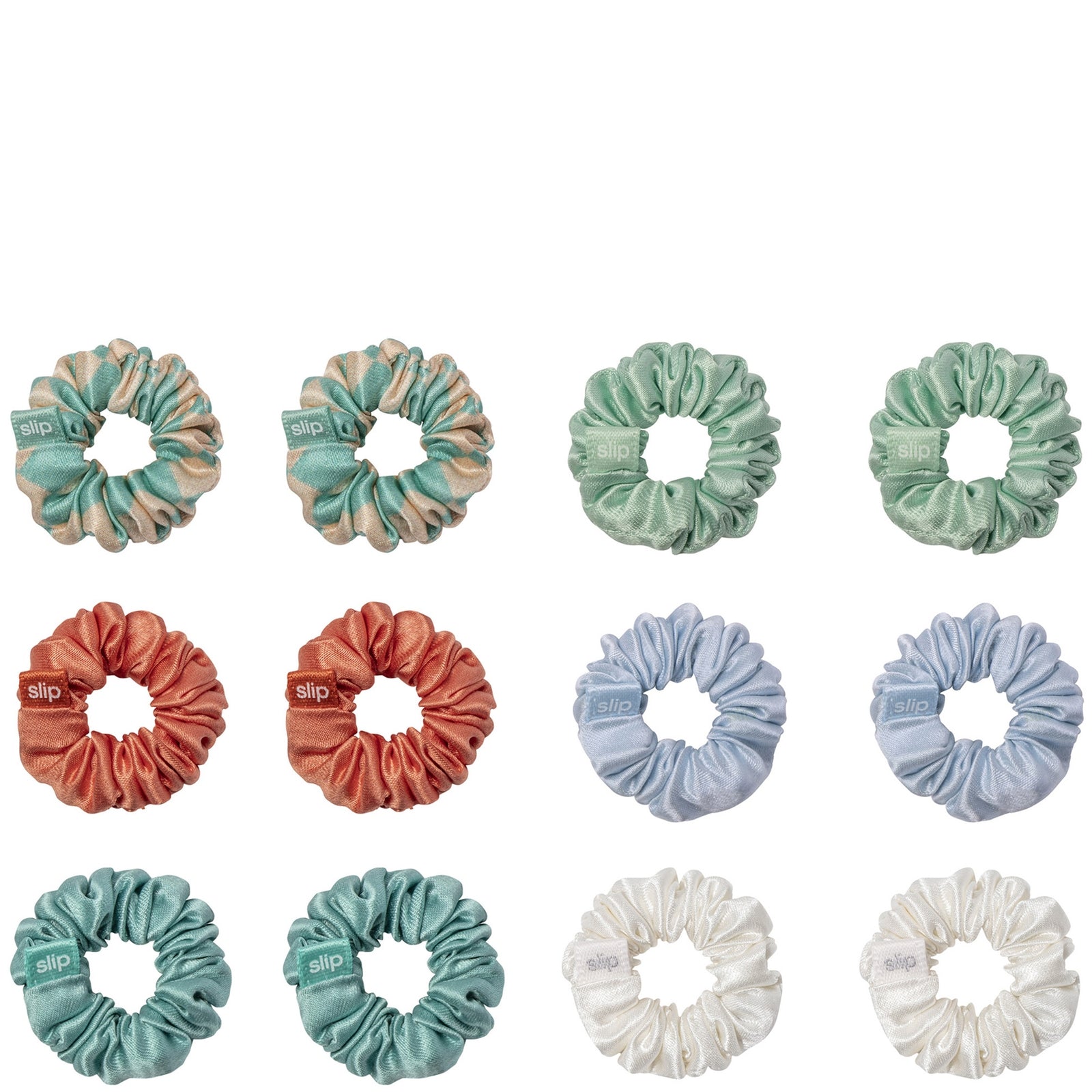 Slip 12 Pure Silk Minnie Scrunchies: zachte haarbandenGevlochten kapsels of half opgestoken looks - met de Pure Silk Minnie Scrunchies van Slip kun je je haar net dat beetje extra geven! De 12 kleine scrunchies zijn verkrijgbaar in prachtige kleuren en zijn het perfecte accessoire voor veel verschillende kapsels. Ze zijn gemaakt van hoogwaardige slipsilk, de zijde waarvan de iconische Slip-zijden kussens worden gemaakt. Dit betekent dat ze bijzonder zacht zijn voor het haar, niet trekken en geen vouwen achterlaten. Een set met glanzende scrunchies voor opvallende kapsels!