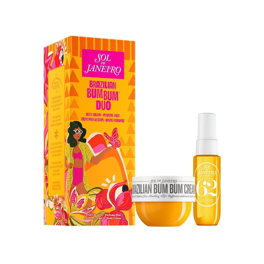 Sol de Janeiro Braziliaans Bum Bum DuoErvaar het verslavende aroma van pistachenoten en zoute karamel en ontdek het Braziliaanse schoonheidsgeheim van een verzorgde huid - met het Brazilian Bum Bum Duo van Sol de Janeiro! De Braziliaanse Bum Bum Cream scoort met een schoonheidsmix van voedende cupuaçu boter, de antioxidant krachtpatser açaí en voedende kokosolie voor een onweerstaanbaar zachte huid. Brazilian Crush Cheirosa 62 hult huid en haar in zonnige noten en laat een gevoel van frisheid achter. Verwen je huid en zintuigen - voor momenten vol lichaamsvreugde!