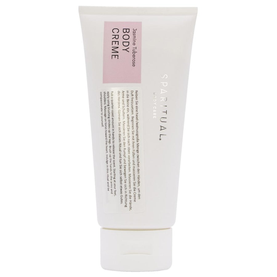 Rijke bodycrème met bloemengeurDe Jasmine Tuberose Body Cream van SpaRitual maakt gebruik van ingrediënten die al eeuwenlang gewaardeerd worden om hun voedende eigenschappen. Aloë vera, jojoba-olie, sheaboter en tamarindezaad vormen een rijke mix die de huid langdurig hydrateert, beschermt tegen schadelijke invloeden van buitenaf en helpt elasticiteit te verkrijgen. De bodycrème scoort ook hoog met zijn geur, die de geest verwent met heerlijke bloemige noten.