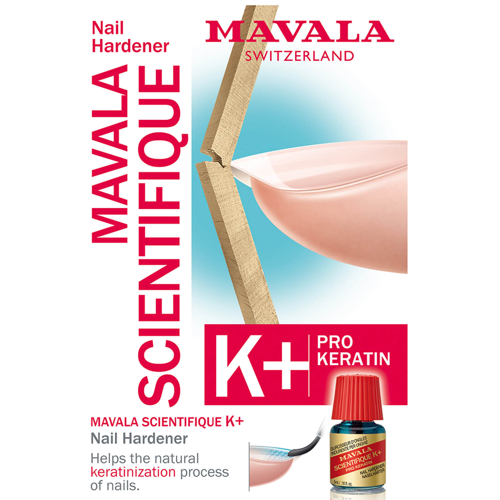 NU SCIENTIFIQUE ZONDER FORMALDEHYDE Ervaring heeft bewezen dat de top van de nagel het meest kwetsbare gedeelte is dat gemakkelijk breekt, dus daardoor versterkt moet worden. De Mavala Scientifique K+ verhardt de nagelplaat dankzij een wetenschappelijk actief ingrediënt dat de samenhang van keratinevezels verbetert zodat de drie belangrijkste nagellagen met elkaar worden verbonden. Het product bevat ook kristallen harsdruppels van de pistache mastiekboom, die voor komt op het Griekse eiland Chios. Dit gom extract helpt bij het natuurlijke verhoorningsproces van de nagels, het versterkt ze. Deze indringende waterige oplossing verhardt zachte nagels en voorkomt breken of splijten. Als toevoeging op dit product heeft Mavala eenzelfde product ontwikkeld waarbij de FORMALDEHYDE vervangen is door ingrediënten die dezelfde werking hebben. Dit alles voor een nog betere gezondheid van de nagels.