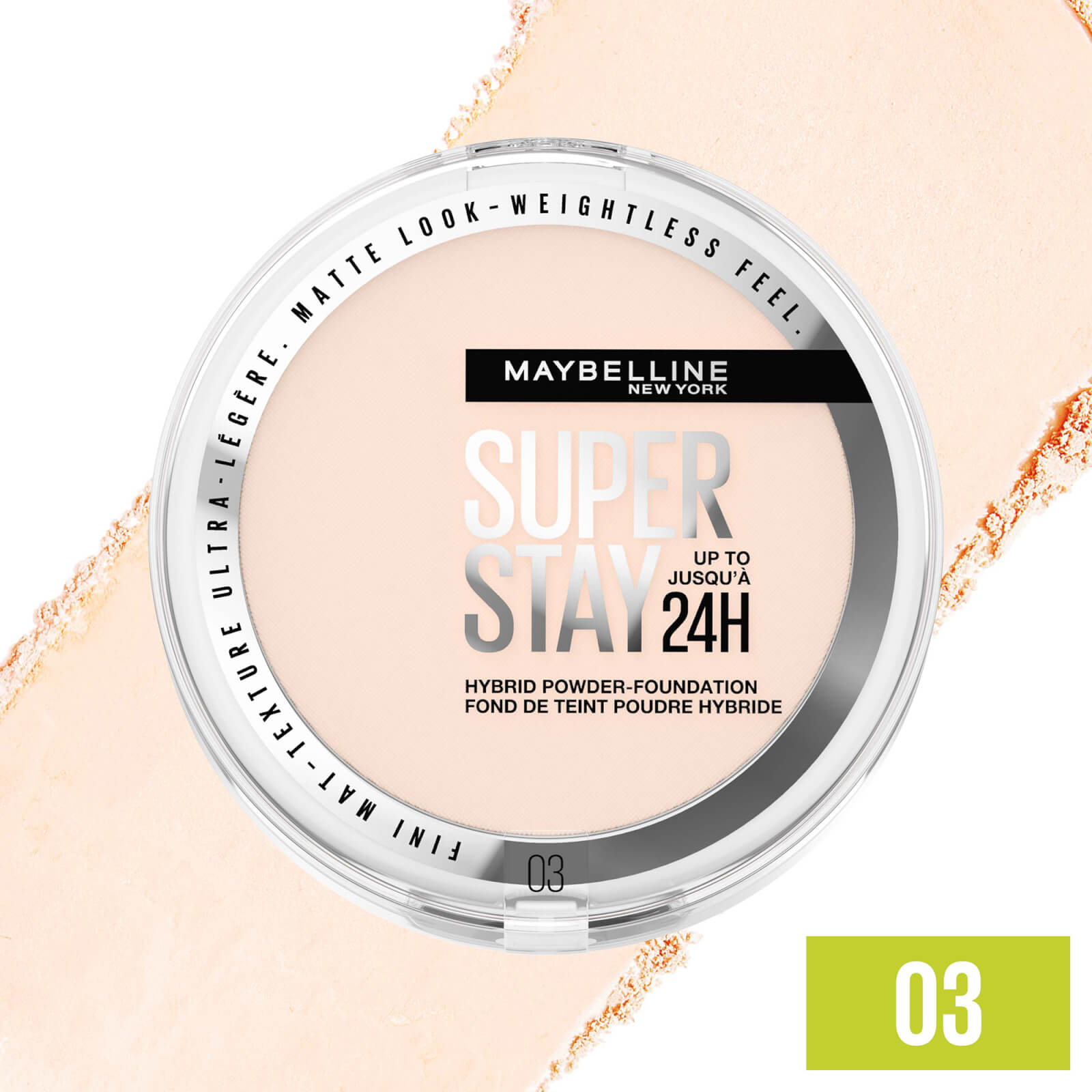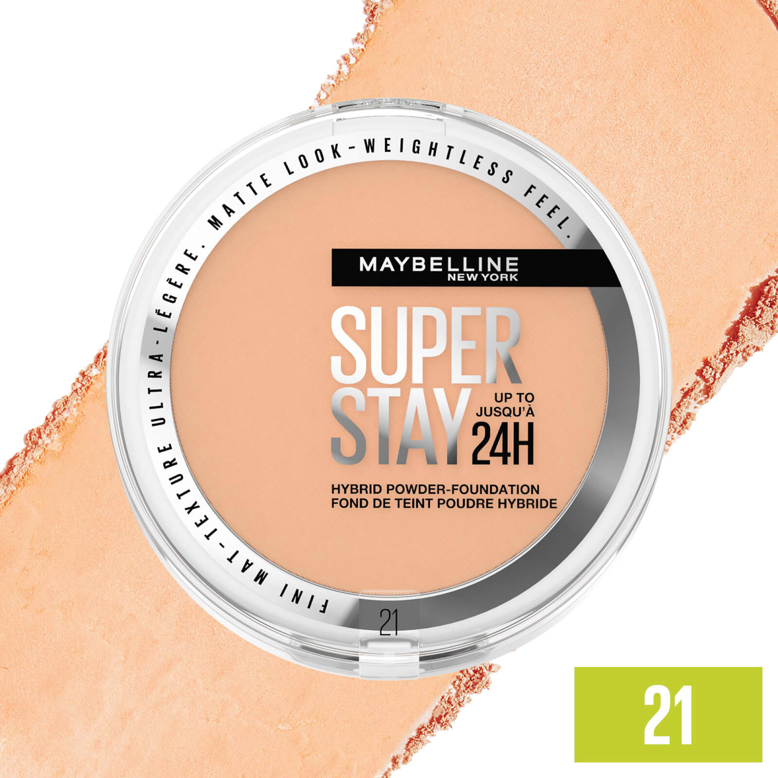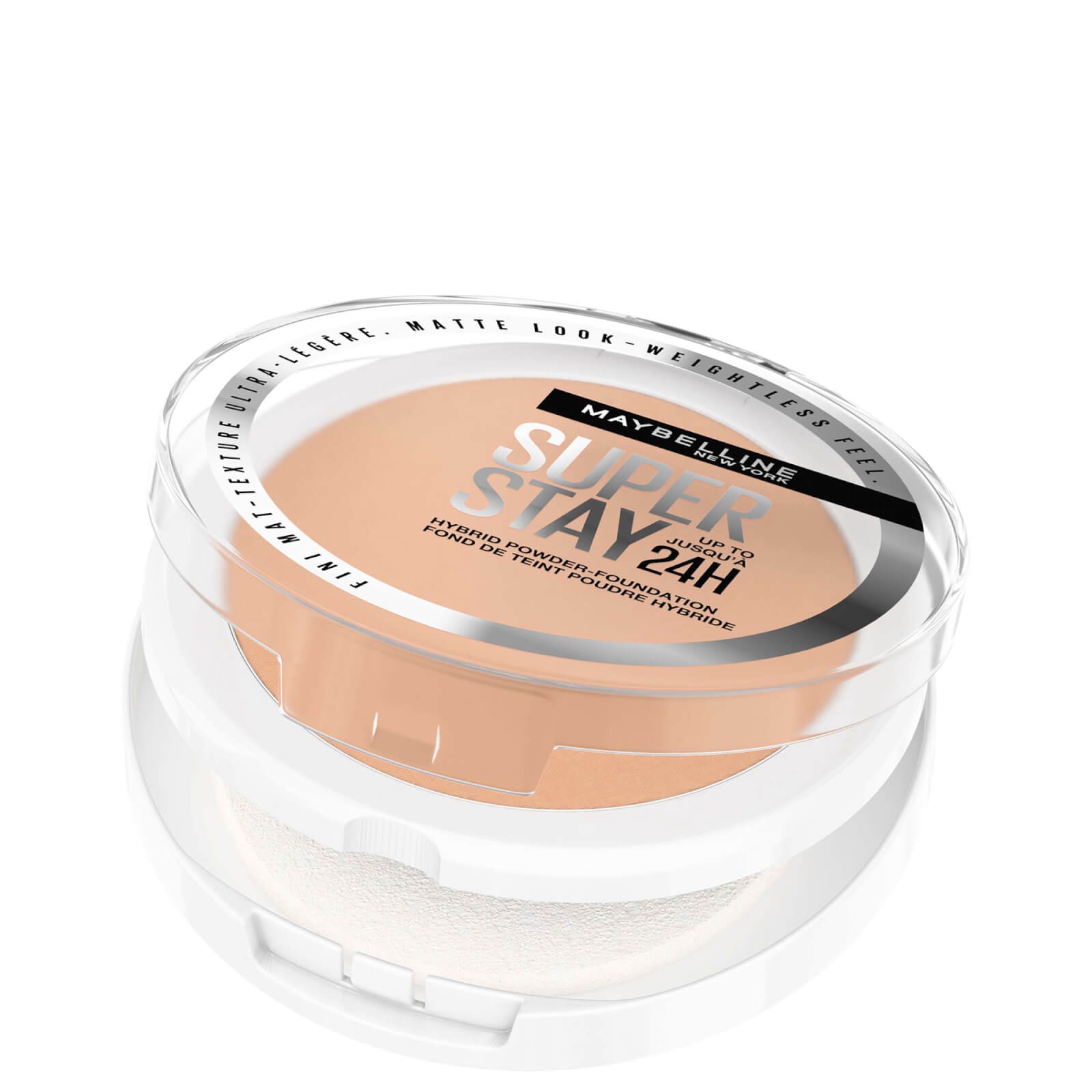 Maybelline New York - Super Stay 24H Hybrid Powder FoundationDe Super Stay 24H Hybrid Powder Foundation van Maybelline New York is een poeder en foundation in één en geeft je teint tot 24 uur lang een matte finish met een airbrushed effect. De veganistische formule zit vol met lichtgewicht, goed dekkende pigmenten die zich gemakkelijk vermengen om een egale teint te creëren zonder te creasen of de huid uit te drogen. Bovendien is de poeder olievrij en veegvast en ook bestand tegen zweterige activiteiten zoals sporten.