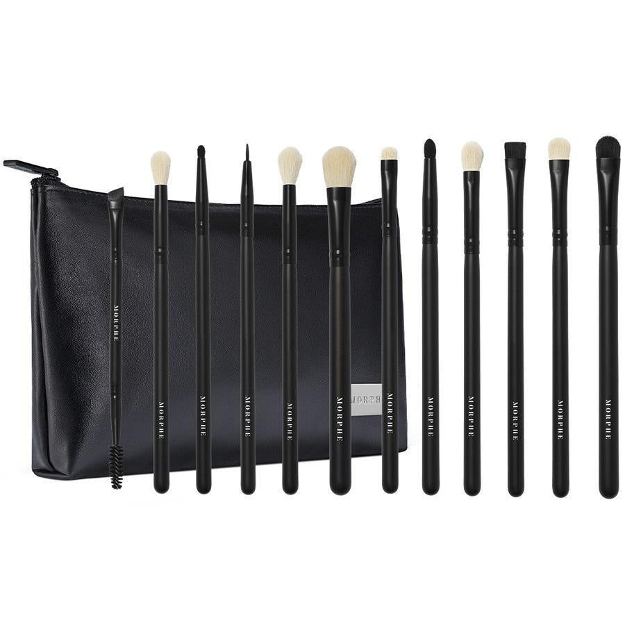 Eye Obsessed Penselenset van Morphe. Als u deze 12 waanzinnige penselen eenmaal in huis hebt, verliest u ze niet meer uit het oog. U kunt er namelijk alles mee, van eyeliner zetten, oogschaduw aanbrengen en blenden tot alles ertussenin.