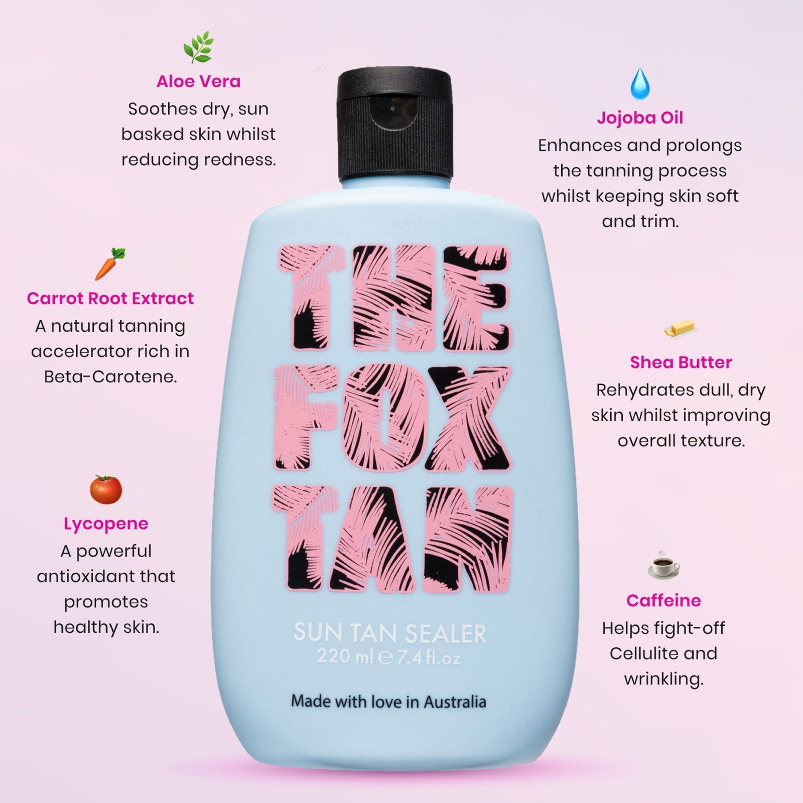 The Fox Tan Sun Tan Sealer: verlengt je zomerse kleurtjeTeintMet de Sun Tan Sealer van The Fox Tan kun je nog lang genieten van je prachtige bruine tint! De hydraterende after-sun formule met bètacaroteen en lycopeen beschermt de melanine in de huid en verlengt zo de natuurlijke zomerkleuring. De niet-vette lotion trekt snel in de huid om het vocht in te sluiten en de gloed de hele dag en nacht te behouden.