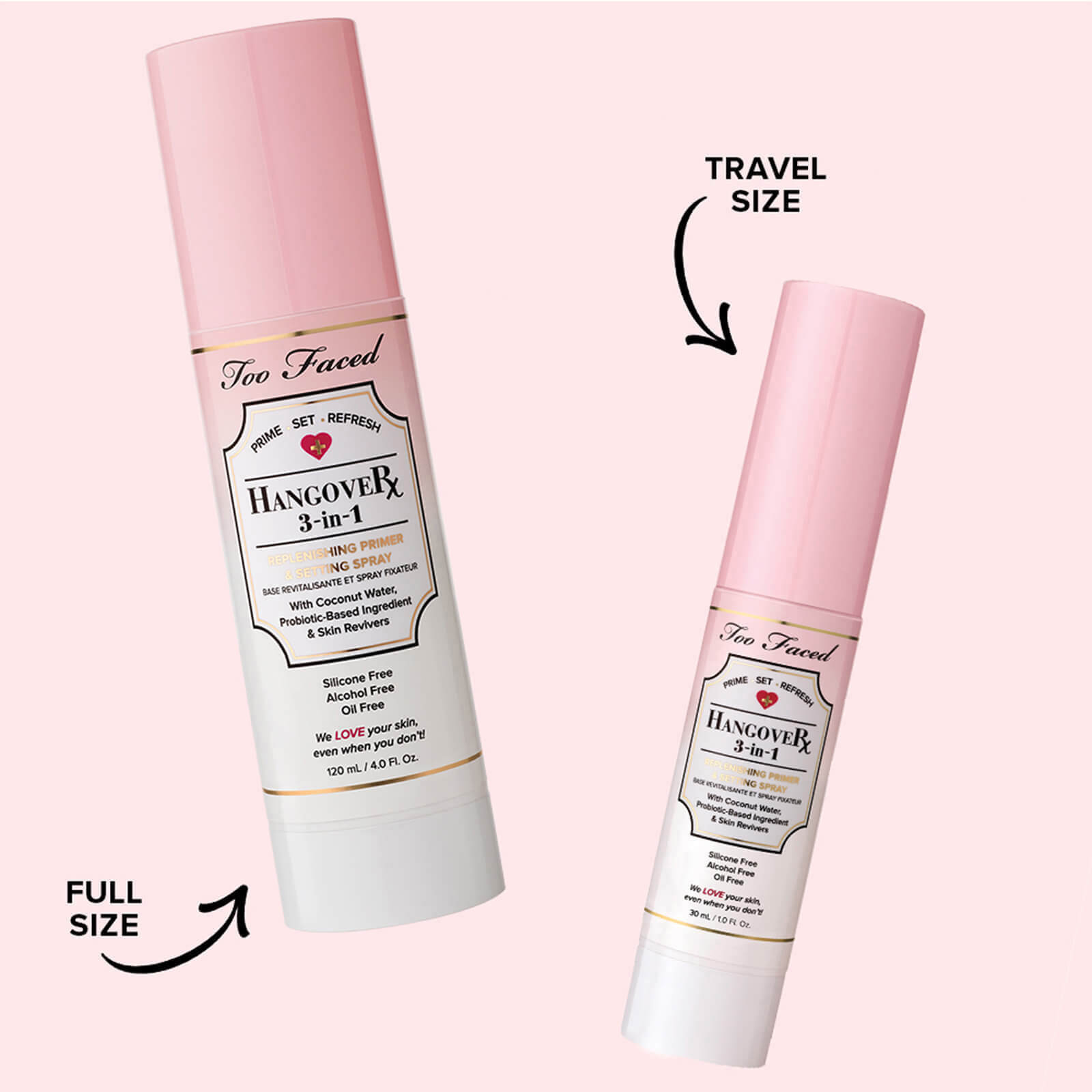 Blijf fris en vlekkeloos met dit handige reisformaat van Too Faced’s iconische, gewichtloze 3-in-1 Hangover Replenishing Primer & Setting Spray. Deze met kokoswater doordrenkte mist die make-up voorbereid, verstevigt en verfrist, terwijl het helpt om de huid gehydrateerd te houden.